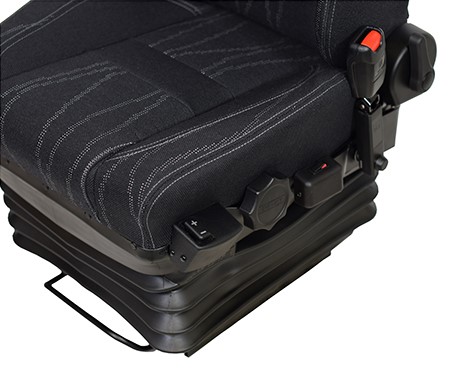 Featuring stepless weight and independent height adjustment, quick release dump valve, adjustable lumbar, head rest and a choice of left or right controls. Optional extras include 3 or 4 point seatbelts, operator presence switch, fold up adjustable armrests and integrated 12V or 24V compressor